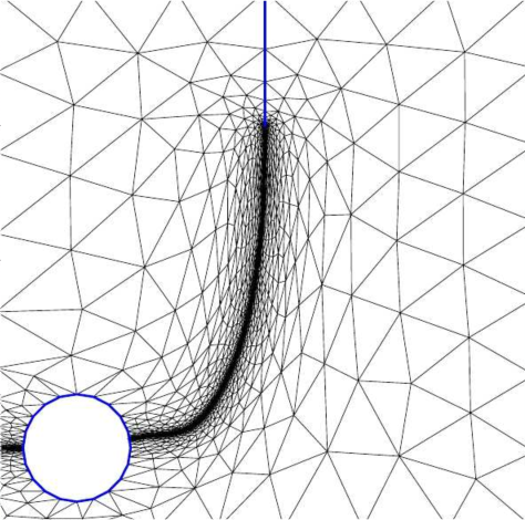 Despite the realistic and physically sound modeling, this approach has the drawback that any actual discretization is a bias towards a proper fracture propagation. Using traditional isotropic finite element discretization this problem can only be minimized by applying very fine meshes, which drastically increases the computation time as well as the memory demand of the algorithms. Another remedy was recently proposed using adaptive anisotropic remeshing, with the following advantages: